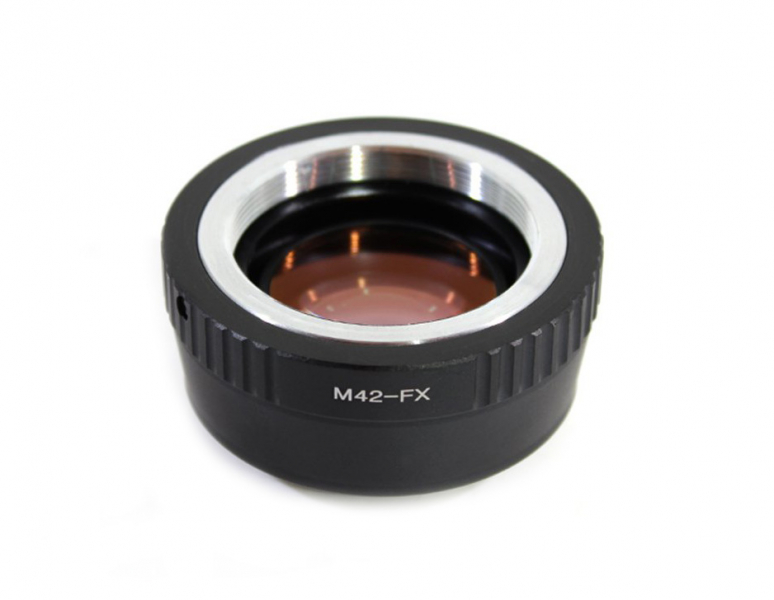 Адаптер Focus Reducer Speed Booster для M42 - Fuji FX Адаптер предназначен для установки объективов с резьбой М42 на байонет Fuji FX. Адаптер позволяет компенсировать кроп-фактор камер при использовании объективов для полнокадровых фотоаппаратов. Speed Booster адаптер увеличивает максимальную диафрагму, MTF и изменяет фокусное расстояние объектива, увеличивает резкость изображения. При установке полнокадровых объективов на камеры с меньшим размером сенсора часть формируемого изображения теряется, тогда как Speed Booster дополнительно фокусирует изображение, направляя на уменьшенный сенсор весь световой поток, собранный объективом. Особенности