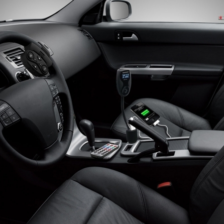 • Установка FM-трансмиттера происходит довольно-таки легко. Достаточно всего лишь подключить его к гнезду прикуривателя, а с помощью гибкого держателя установить нужный угол обзора для наиболее комфортного просмотра информации с экрана и управления трансмиттером;