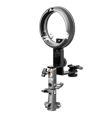 Держатель с креплением Phottix HS Speed II предназначен для крепления накамерной вспышки на стойку. С помощью детали типа L, стандартного башмака, винта крепления ¼х20 и ремешка осуществляется возможность крепления вспышек различных размеров либо в вертикальном либо в горизонтальном положении. Одновременно при помощи крепительных колец Bowens могут устанавливаться различные отражатели и рассеиватели света. Модификатором света Luna Beauty Dish и софтбоксом 2-в-1 Комплектация Держатель с креплением Phottix HS Speed II: