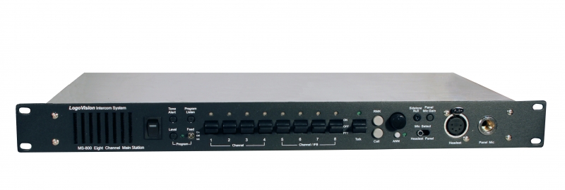 Блок студийной технологической связи Logovision MS-800 предназначен для профессионального использования в небольших телерадиовещательных студиях или передвижных телевизионных станциях (ПТС) для связи режиссера и до 20 абонентов (например: операторы) по 8 каналам. Для связи используется проводное соединение.Для подключения 4-х проводных устройств(например CCU камерных каналов) рекомендуется использовать четырехпроводной интерфейс Logovision TF-204. Чтобы увеличить количество каналов, в базовом блоке предусмотрено соединение с блоками MS-200, MS-800, MS-800T. Может применяться с поясными блоками Logovision BP-X, BP-E, а так же с настольным блоком Logovision DT-X. Logovision MS-800 характеризует стабильная и надёжная работа в любых условиях, хорошая защищенность от внешних помех, чистый и громкий звук, легкость в управлении и обращении.