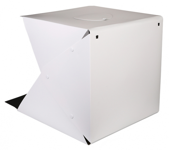 Складной фотобокс (лайткуб) 40x40 см с LED-подсветкой для предметной съемки Материал: Пластик. Возможность съемки сверху. Комплектация:
