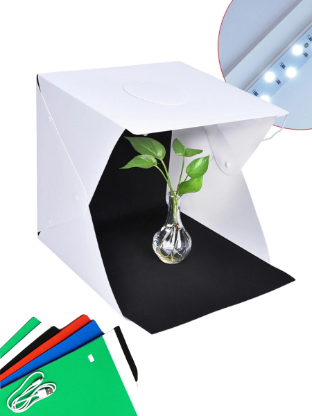 Фотобокс для предметной съемки складной с LED-подсветкой, 40x40 см + 5 цветных фонов