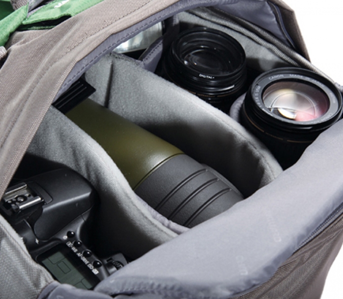 Серию Kinray безусловно оценят фотографы-натуралисты и путешественники. Конструкция рюкзака позволяет максимально адаптировать его для различных задач. В просторном внутреннем отделение можно надёжно разместить: зеркальную камеру, зрительную трубу или зеркальную камеру с присоединённым телеобъективом. Прочный и влагостойкий материал рюкзака надёжно защищает оборудование в плохую погоду. Убираемый чехол от дождя обеспечивает дополнительную защиту. Большой клапан на лицевой стороне позволяет быстро и безопасно достать необходимое оборудование. Мягкая плечевая лямка изменяемой длины и система регулируемых ремней обеспечивают идеальную подгонку по фигуре. Также предусмотрены: крепление для штатива и регулирующие высоту рюкзака ремни. В карманах на «молнии» удобно хранить необходимые мелкие предметы, ключи, путеводители и т. п. Ремень с карабином, на лицевой стороне, служит для переноски небольших аксессуаров. Два нижних ремня позволяют закрепить на рюкзаке крупные предметы, такие как спальные мешки или туристические коврики.
