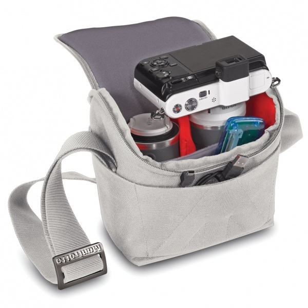 Небольшая плечевая сумка рассчитана на беззеркальные камеры со съемным объективом, дополнительный объектив. Есть небольшие карманы для личных вещей и небольших аксессуаров.