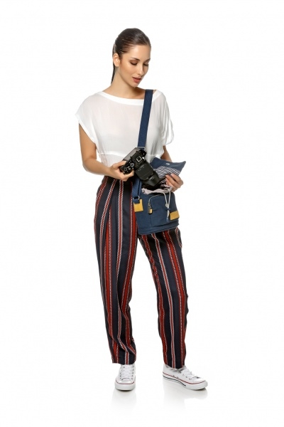 Новая Средиземноморская коллекция. Сочетание глубокого синего цвета со светло-серыми полосками и вставками из натуральной кожи добавляют нотку свежести и создают оригинальный стиль каждой сумке. Кобура предназначена для беззеркальной камеры с объективом. Мягкая внутренняя поверхность основного отделения надежно защитит оборудование. В переднем кармане можно хранить небольшие аксессуары. Удобный, регулируемый по длине плечевой ремень. Внешние размеры 21х18х14 см, внутренние 17,5х16х12 см. Характеристики: