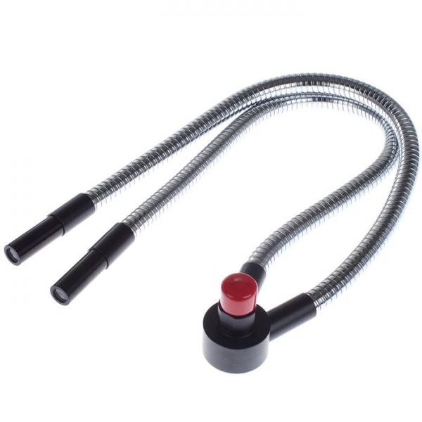 Волоконный осветитель двойной представляет собой два многожильных стеклянных волновода, размещенных в гибких металлическоих рукавах. У двойного осветителя жесткость рукава достаточна, чтобы придавать рукаву нужную форму и сохранять ее под действием собственного веса. Характеристики: