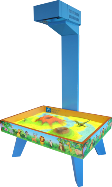 Интерактивная песочница SandBox - современное игровое оборудование, использующая обычный песок и интерактивные технологии. Проецируемое изображение на песке взаимодействует с движениями рук, позволяя строить различные ландшафты, окрашенные в разные цвета. Реальная река проложенная вами на песке, настоящие горы сделанные вами, не оставят равнодушными ни детей ни взрослых. Интерактивная песочница работает от электросети 220 В. Потребляемая мощность песочницы всего 550 Вт. Вам необходимо только подвести эл.питание к месту монтажа. Проекция на песок осуществляется через зеркало, тем самым световой поток идет по центру песочницы, минимизируются тени и улучшается работа камеры. Корпус устанавливается непосредственно над самой песочницей. Мощность светового потока проектора составляет 4500 Лм.