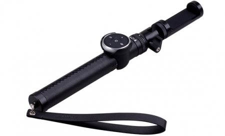 • дает возможность контролировать zoom, режимом видеосъёмки, переключать съемку с задней камеры на фронтальную. Максимальное рабочее расстояние – 10 м. Пульт можно крепить на штативе, для чего в комплект входит специальный держатель;