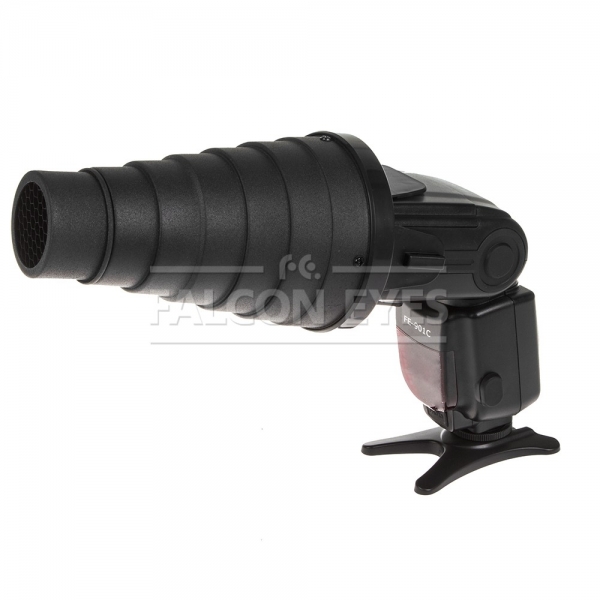 • коническая насадка, изготовлена из металла, длина 145 мм, диаметр выходного отверстия 40 мм, в комплекте две сотовые насадки с размером ячеек 2 мм и 3 мм: используя вспышку вне камеры, комплект позволит создать выразительный световой акцент на объекте съемки.