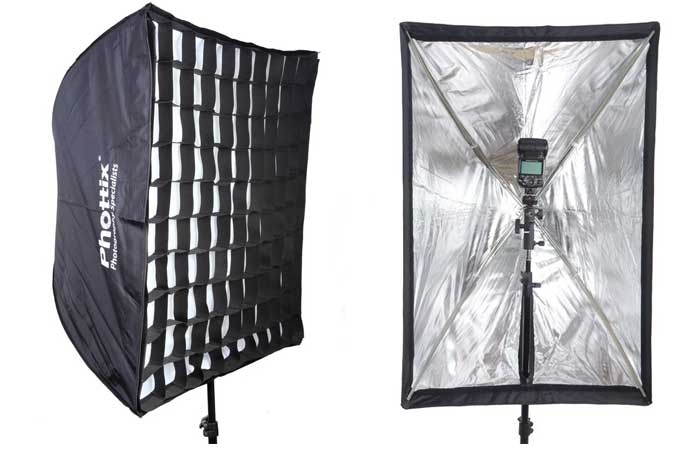 Вспышка устанавливается в обратном направлении внутри софтбокса, стреляя в сторону задней части для достижения более уравновешенного света и избегания локальных «горячих пятен». Данный софтбокс может быть идеально использован вместе с накамерной импульсной вспышкой, либо с небольшим студийным осветителем — без лишней волокиты с крепительными рейками и кольцами. Его можно сложить в течении секунд, делая данный софтбокс удобным для перевозок.