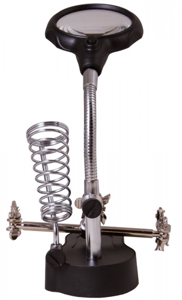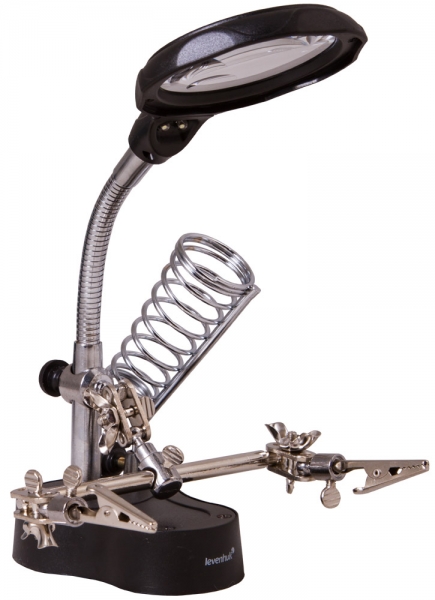 Лупа настольная Levenhuk Zeno Desk D3 Настольная лупа Levenhuk Zeno Desk D3 создана специально для тех, кто занимается ремонтом плат, пайкой, моделированием, ювелирными и часовыми работами. Держатель для инструментов и держатели «третья рука» станут настоящей находкой для человека, который любит работать руками. Бифокальная линза дает два увеличения. На большом диаметре кратность составляет 3,5х, на малом – 12х. Лупа зафиксирована на гибком штативе и снабжена встроенной подсветкой, состоящей из двух ярких светодиодов. Выключатель подсветки расположен у основания линзы.