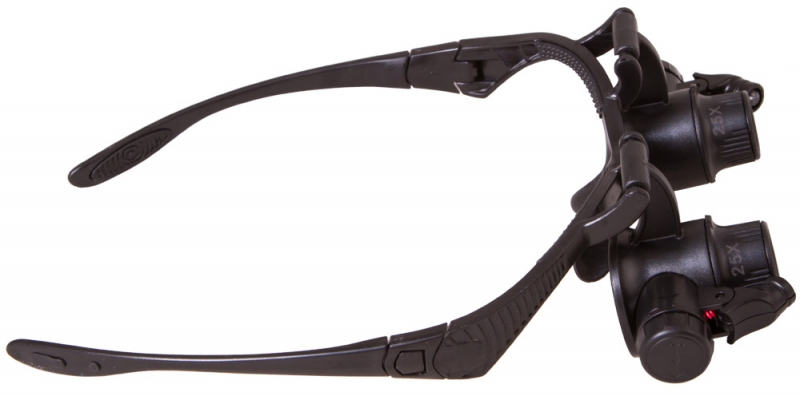Лупа-очки Levenhuk Zeno Vizor G4 Лупа-очки Levenhuk Zeno Vizor G4 – мощный увеличительный прибор для длительной работы с мелкими предметами. Эта лупа дает увеличение в диапазоне от 10 до 25 крат и имеет встроенную светодиодную подсветку. Вы сможете работать не только днем, но и ночью, и при слабом внешнем освещении. Лупа будет незаменима при выполнении ремонтных работ, изучении часовых механизмов и ювелирных изделий. Очковая оправа позволит освободить руки для выполнения любых операций с предметами. Сменные линзы позволят подобрать оптимальную кратность для решения задач любой сложности. Линзы парные, сделаны из оптического пластика. Во время наблюдений любую линзу можно отвернуть наверх, не снимая ее полностью с оправы, что позволяет изучать рабочую область без увеличения. На каждой линзе размещен яркий светодиод. Световой луч подсветки можно направлять смещением основания подсветки.