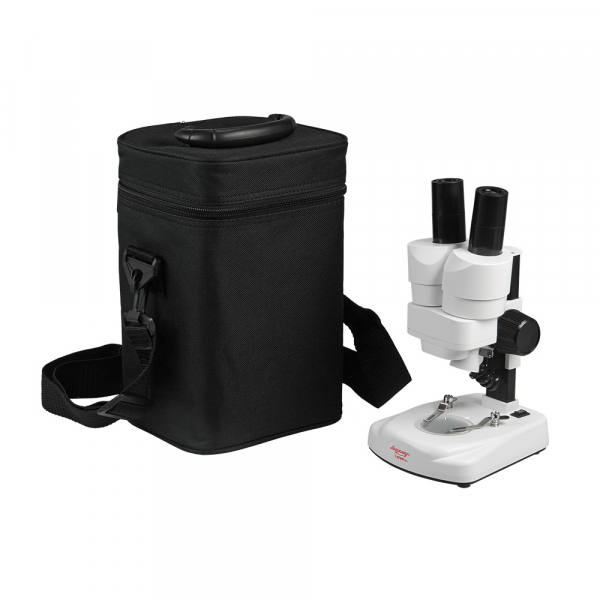 Микроскоп Микромед Атом 20x это портативный стереоскопический микроскоп, который позволяет рассмотреть увеличенное объемное изображение исследуемого объекта с высокой контрастностью, четкостью и большой глубиной резкости. Увеличение 20х Кратность микроскопа 20х позволяет изучить окружающий ребенка микромир - рассмотреть насекомых, листочки собранных растений, текстуру тканей, крупинки сахара и соли, волокна хлеба, кожуру и мякоть различных овощей и фруктов, и многое другое - объекты размером до 9 мм полностью помещаются в поле зрения этого прибора. Возможность установки цифровых камер Так же возможна работа с цифровыми камерами, специально предназначенными для микроскопов. Для того чтобы установить камеру на микроскоп, достаточно вытащить любой из окуляров и поместить камеру в освободившийся окулярный тубус. Исследования в отраженном и проходящем свете Подсветка работает в двух режимах – подсветка снизу или подсветка сверху. Микроскоп подходит для наблюдения прозрачных, непрозрачных и полупрозрачных объектов. Такие возможности увеличат кругозор юного исследователя. Жесткий футляр в комплекте В комплект входит жесткий футляр с ручкой и наплечным ремнем. Пластиковые дно, крышка и боковые поверхности обшиты черным мягким материалом. Снаружи водоотталкивающая синтетическая ткань. Крышка на молнии. Конструкция не позволит дождю попасть внутрь. Такой футляр очень важен – без него микроскоп не взять ни в машину, ни в «поле»! А с любыми оптическими приборами нужно обращаться бережно.