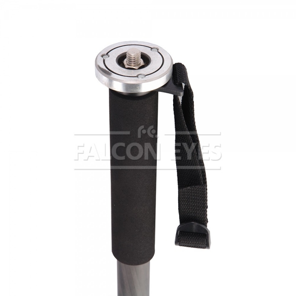 Falcon Eyes Возможна установка штативной головы с установочной резьбой 3/8" или 1/4", диаметр площадки под штативную головку — 50 мм. Рекомендуется устанавливать на монопод штативные шаровые головы серии BH. Четыре секции монопода обеспечивают широкий диапазон регулировки рабочей высоты. Большой диаметр секций (диаметр верхней секции 25 мм) и надежные цанговые зажимы успешно гасят передающиеся по корпусу вибрации и сохраняют прочность конструкции. Металлические зажимы с фторпластовыми прокладками обеспечивают долговечность работы и прочную фиксацию секций. Максимальная высота в рабочем состоянии 145 см. Достаточно компактный в сложенном виде — 48,5 см. Монопод изготовлен из карбона и весит всего 0,35 кг. Карбоновый монопод обладает рядом уникальных свойств — он прочнее и долговечнее алюминиевых аналогов и при этом обладает меньшей массой. Резиновая опора обеспечивает устойчивость монопода и не царапает поверхность на которой он установлен. Рукоятка из вспененного материала служит для комфортной работы при отрицательных температурах и прочного удерживания без проскальзывания. Монопод снабжен ремешком для фиксации на руке, это предупредит падение монопода с камерой, если фотограф случайно выпустит его из рук.