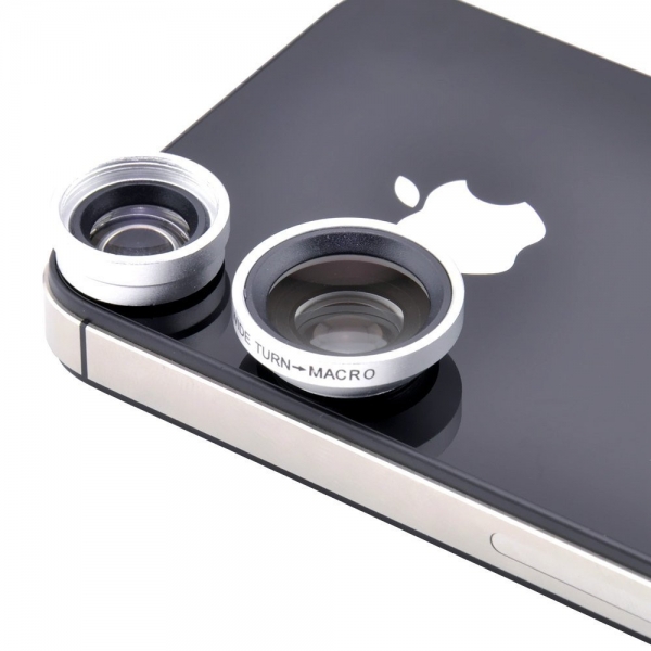 Объектив 3-in-1 для iPhone - уникальное дополнение к Вашему телефону, которое существенно расширит Ваши возможности в фотографии. Он включает в себя 3 объектива: широкоугольный, объектив "Pыбий глаз" и макрообъектив, которые заключены в металлический миниатюрный корпус. Фишай объектив позволяет получить бочкообразные изображения с углом обзора 180 градусов Широкоугольный объектив будет полезен при съемке пейзажей. Макрообъектив позволяет получить изображения на расстоянии 10-15 мм от объекта.