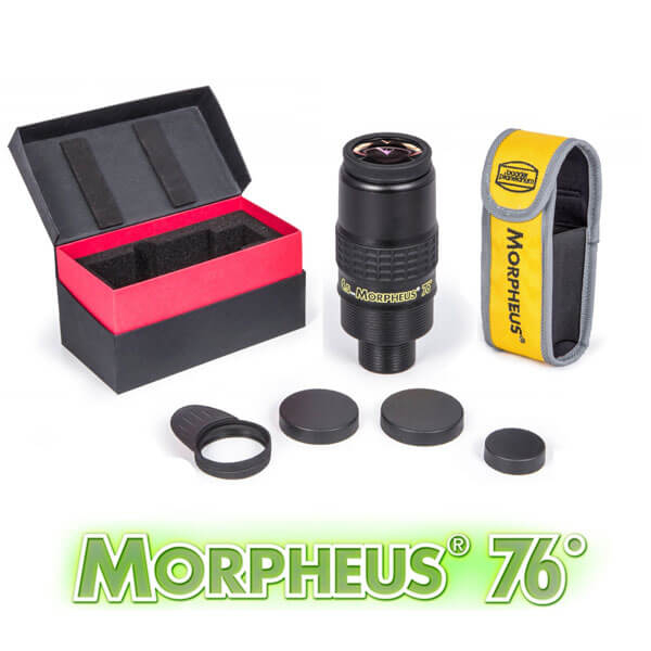 Окуляр Baader Morpheus 4,5 мм Новые сверхширокоугольные окуляры Baader Planetarium серии Morpheus обладают идеально ровным полем зрения в 76 градусов. Благодаря 8-элементной оптической схеме в 5 группах, качество изображения сохраняется по всему полю зрения. Все линзы имеют многослойное фирменное просветление Phantom Coating®, сохраняющее идеальную цветопередачу. Все окуляры серии являются парфокальными, т.е. при смене одного окуляра на другой перефокусировка не требуется. Благодаря технологичной конструкции окуляра Baader Morpheus его можно использовать в качестве проекционного, для фото- и видеосъемки через телескоп с большим увеличением. Это очень удобно для астрофотографии, Вы всегда сможете подобрать нужное Вам увеличение при фотографировании. Для этого на верхней части окуляра предусмотрены крепление M43x0,75. Большое количество переходных колец позволяет использовать окуляры Baader Morpheus практически для всех задач фотографирования астрономических объектов или природы, как в качестве высококачественной проекционной оптики, так и в качестве телеэкстендера. Особенно впечатляющие результаты удается получить при использовании линзовых телескопов. Наблюдая в качественный рефрактор-апохромат, вы убедитесь в том, что выходной зрачок может быть значительно меньше, чем рекомендуется в специальной литературе!