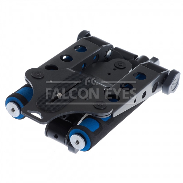 При использовании в качестве наплечного штатива max расстояние между ручками составляет 400 мм (регулируется), длина ручек 210 мм. Снизу и сверху в ручках имеются отверстия 1/4 дюйма для крепления дополнительных аксессуаров (осветителей, микрофона и т. д.) Благодаря подвижному винту 1/4 дюйма камера может передвигаться по площадке штатива в пределах 70 мм. Отверстия 1/4 дюйма в торцах всех обтянутым плотным поролоном частей позволяют закреплять противовес и устанавливатьSVS-21 с камерой на штатив. Мощные барашки из инженерного пластика надежно фиксируют сопрягаемые части изделия, установленного в выбранной конфигурации.