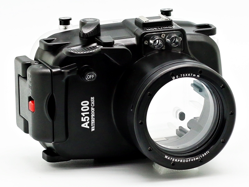 Meikon A5100 (16-50) подводный бокс (аквабокс) для фотоаппарата Sony A5100 Kit с объективом SEL 16-50 mm - выполнен из сверхпрочного поликарбоната с дополнительными ребрами жесткости повышающими крепкость бокса, максиальная глубина погружения 40 метров. Внешнее покрытие бокса не скользит в руках. Бокс полностью поддерживает все функции фотокамеры, включая и работу с внешними подводными вспышками через два оптических порта. Удачная эргономика бокса позволит Вам легко управлять фотоаппаратом даже в подводных перчатках. Все подводные боксы Meikon проверяются в барокамере при давлении эквивалентном максимальной глубине погружения. Иллюминатор бокса имеет резьбу 67 мм для крепления фильтров и насадок.