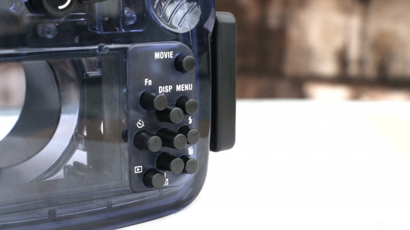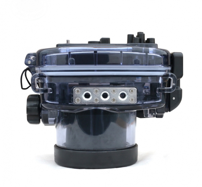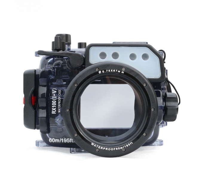 Подводный бокс (аквабокс) для фотоаппаратов Sony Sony CyberShot RX100 моделей I-V - выполнен из сверхпрочного поликарбоната с дополнительными ребрами жесткости повышающими крепкость бокса, глубина погружения 60 метров.
