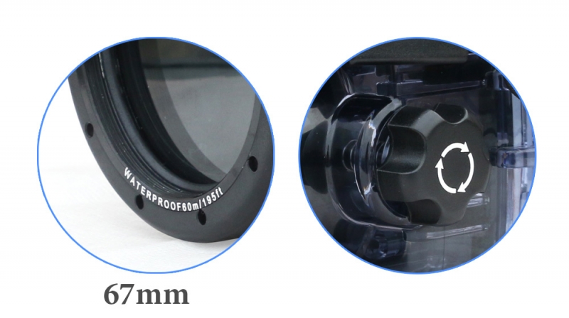 На иллюминаторе имеет резьбу 67мм под оптические насадки и фильтры.