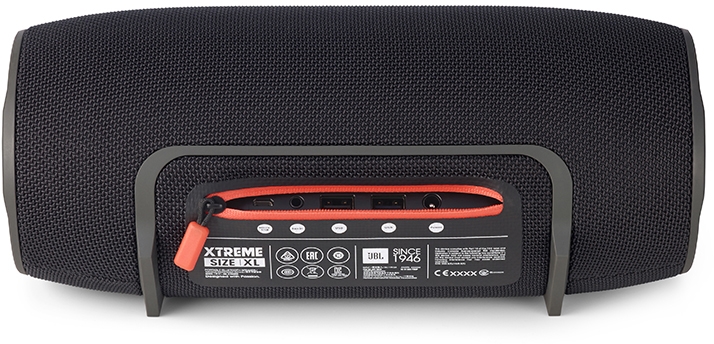 Беспроводная акустическая система черного цвета Xtreme от компании JBL - это портативная влагозащищенная Bluetooth-колонка, которая идеально подойдет для прослушивания музыкальных треков во время активного отдыха. Она оснащена 4 динамиками и двумя внешними пассивными радиаторами работающими в режиме Bi-Amping (раздельное усиления низких и средних частот), которые обеспечивают громкое и чистое звучание с глубокими басами. Беспроводная акустика способна автономно работать до 15 часов благодаря мощному аккумулятору 10000 мАч и может заряжать одновременно два мобильных устройства через USB-порт.