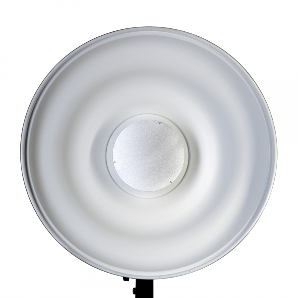 Портретная тарелка Falcon Eyes SuperSoft SR-60W white с сотами Falcon Eyes SuperSoft SR-60W – это комплект модификатора света, включающий 22-дюймовую белую портретную тарелку с алюминиевым дефлектором, дополнительный перфорированный дефлектор, нейлоновый диффузор, сотовую насадку 60° и кольцо с байонетом Bowens (152 мм). Новая форма тарелки захватывает свет и фокусирует его с максимальной эффективностью. Независимо от того в каком направлении световые лучи покинули осветитель, в тарелке новой формы они все равномерно перенаправятся на объект съемки. Белая отражающая поверхность формирует мягкий рассеянный световой поток, такой эффект может потребоваться в портретной съемке. Регулируемый дефлектор устанавливается в двух положениях, что позволяет выбирать результат действия тарелки. С дополнительным нейлоновым диффузором можно получить отличный инструмент для бестеневой предметной съемки. Также, установив перфорированный диффузор, можно добавить немного прямого света к мягкому отраженному от стенок и получить дополнительные возможности для работы на открытом воздухе при ярком солнечном свете.