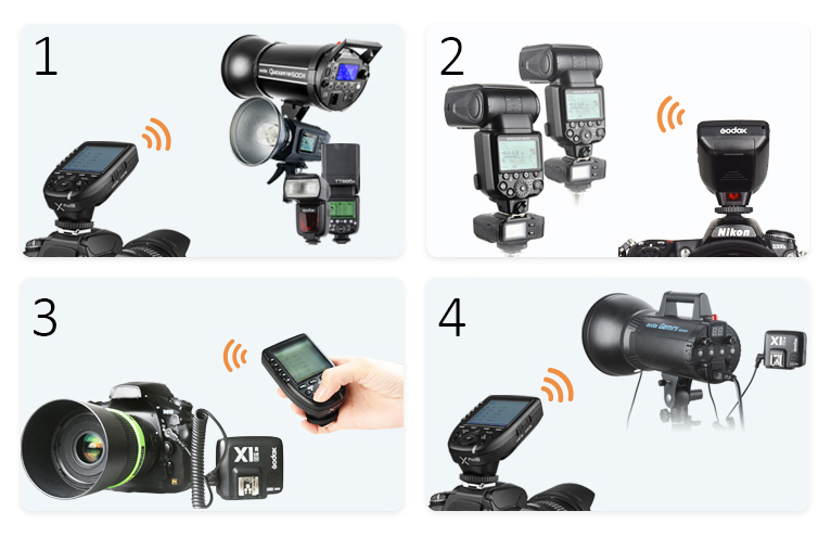 В качестве беспроводного синхронизатора вспышек Godox (накамерных, аккумуляторных и студийных вспышек)