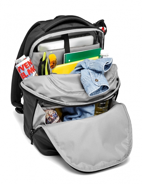 Удобный и компактный многофункциональный рюкзак серии NX. Съемный мягкий отсек в нижней части рюкзака оснащен системой защиты Manfrotto. В нем можно разместить DSLR камеру с установленным зум-объективом, два дополнительных объектива или другие аксессуары, такие как вспышки, светодиодные фонари и т.д. Верхняя часть рюкзака предназначена для личных вещей. Так же можно использовать все пространство рюкзака для личных вещей, достаточно убрать внутренний разделитель. Предусмотрен специальный отсек для 15.6"ноутбука. Так же имеется множество карманов для различных аксессуаров. На внешней стороне рюкзака предусмотрено крепление для штатива серии Compact.