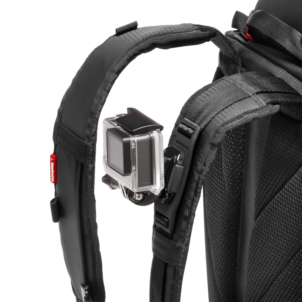 Новинка от компании Manfrotto – рюкзак для экстремальных путешествий. Легкий, компактный и эргономичный. Специальное крепление камеры GoPro для съемки на ходу. Внутренние съемные чехлы для защиты оборудования вмещают до 3 камер GoPro и одной компактной фотокамеры типа Sony A7 с объективом 24-70/4. В рюкзаке можно расположить различные аксессуары и личные вещи. Отделение для ноутбука до 12,9 ". Верхняя крышка рюкзака усилена дополнительной защитой. На вешней стороне рюкзака предусмотрен карман для штатива Pixi. Широкий поясной ремень и дополнительный ремень на груди обеспечивают надежную фиксацию рюкзака при экстремальных приключениях. Дождевой чехол в комплекте. Рюкзак изготовлен их высококачественных материалов. Цвет черный. Характеристики