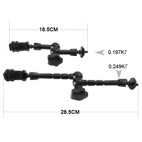 FujimiMagic Arm применяется для установки ЖК дисплеев, вспышек, ламп и пр. Эргономичный дизайн, всего одна ручка, для фиксации всех позиций. Прочная конструкция с ручкой фиксации контроля, создано для того что бы сделать ваши руки свободными, а так же упрощает монтаж, размещение и регулировку любых накамерных аксессуаров. Для крепления к камере, используется стандартный разъём типа «башмак» |