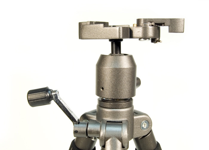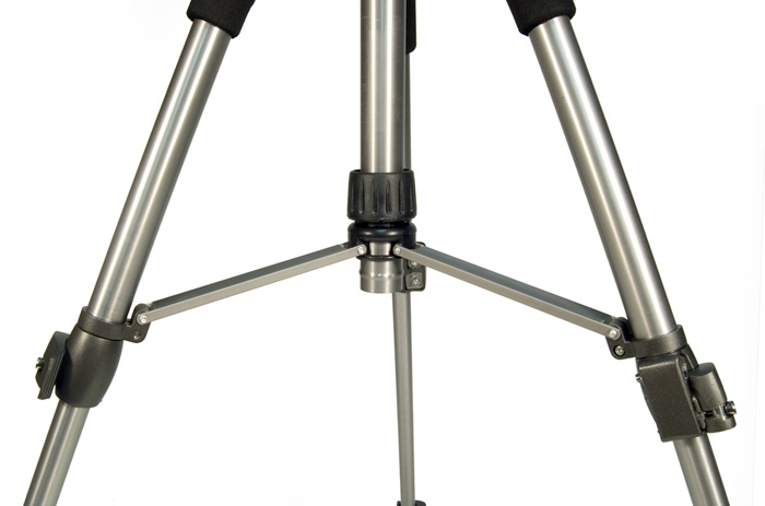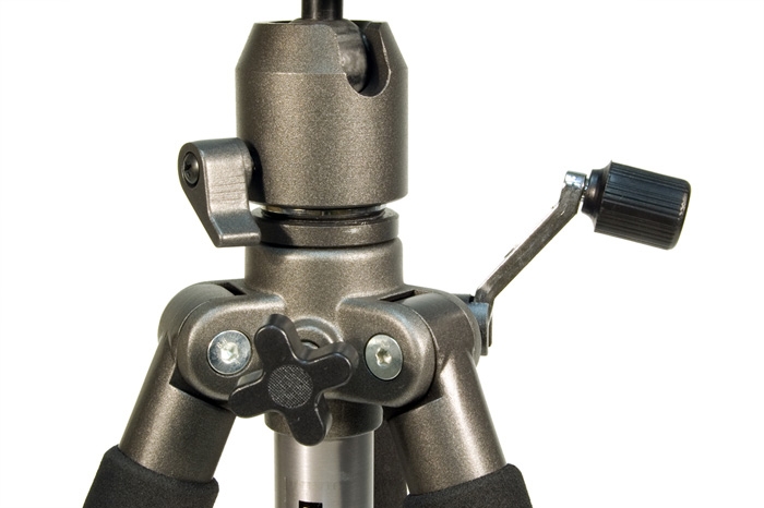 Ножки штатива фиксируются эксцентриковыми зажимами, благодаря чему на его сборку или разборку требуется всего несколько секунд. Удобные поролоновые накладки на ножках штатива облегчают его переноску в разложенном состоянии. Штатив имеет выдвижную центральную колонну с зажимным винтом, который надежно фиксирует ее в поднятом положении.