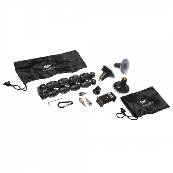 Штатив Falcon Eyes LifePOD Flex Plus Универсальный штатив Falcon Eyes LifePOD Flex Plus позволяет установить камеру не только на ровной поверхности стола, но и закрепить ее на любом выступе, перилах, полке, трубе, ветке дерева или другом подходящем месте. Штатив предназначен для установки смартфонов, экшн-камер, компактных видеокамер или беззеркальных камер весом до 1-3 кг (нагрузка зависит от способа установки штатива). На основании штатива находится площадка со стандартным винтом диаметром 1/4", в комплект входит чехол, адаптер для крепления смартфона с шириной захвата до 80 мм и адаптер для крепления экшн-камер GoPro. Отличительной особенностью штатива LifePOD Flex Plus является оригинальная конструкция ножек, они состоят из гибких шарнирных соединений, которые сгибаются в любом направлении под любым углом и надежно сохраняют свое положение. Благодаря резиновым кольцам, расположенным на каждом шарнире, и резиновым опорам штатив можно установить даже на деликатных поверхностях. Также в комплект поставки включены присоски и металлические шипы, которые устанавливаются вместо резиновых опор. Присоски позволят установить камеру на любую ровную и гладкую поверхность — окно, стол, стекло автомобиля, зеркало и т. д. Шипы обеспечат устойчивость на рыхлой земле или скользком льду. Falcon Eyes LifePOD Flex Plus — компактный и легкий, найдет применение во всех видах фото и видео съемки, быстро устанавливается на любую поверхность, поместится в любой сумке и поможет сделать оригинальный кадр. Изготовлен из высококачественных материалов, гибкость ножек сохраняется даже при многократном использовании. Совет: конструкция штатива LifePOD Flex Plus предусматривает возможность перераспределения количества шарниров по ножкам, например для удлинения одной из ножек, а также существует возможность объединения двух штативов в один с удлиненными ножками.