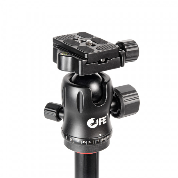 Съёмная шаровая голова обладает высокой прочностью и прецизионным исполнением. Установив усилие зажима на близком к максимальному уровню, вращение шара происходит плавно и без «рывков». Винтовое крепление головки имеет резьбу 3/8“. Фиксатор горизонтального панорамирования работает независимо и управляет поворотом головки относительно основания с нанесенной шкалой. Это позволяет вернуться к определенному ранее положению, подобранному для конкретной ситуации. На шаровой головке предусмотрен пузырьковый уровень. Головка оснащена быстросъёмной площадкой с противоскользящими накладками. Винт для крепления оборудования с резьбой 1/4“. Размер площадки 39 х 50 мм. Для предотвращения выпадения площадки, с обратной стороны предусмотрены два стопорных винта.