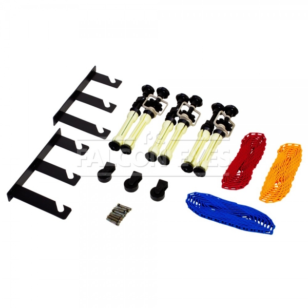 Система подъема фона предназначена для оперативного использования фонов. B-3W позволяет установить 3 фона. Крепится на стены или потолок с помощью входящих в комплект кронштейнов (возможна установка на стойки/распорки с помощью винтового зажима Falcon Eyes CL-22 с адаптером, приобретается отдельно). Движение каждого фона осуществляется входящими в комплект роликами с цепями. Рекомендуется для использования с бумажными фонами. Крепление к кронштейнам каждой трубы с намотанным на нее фоном, осуществляется при помощи пары цанговых зажимов, оснащенных ручным приводом для опускания/подъема фона.