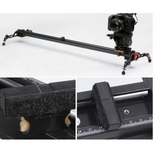 Шершавое покрытие проходит термическую обработку и тщательно шлифуется. Такая технология обработки помогает добиться максимально гладкой поверхности рельс. После прохождения термической обработки поверхность рельс становится зеркально гладкой. В дополнение ко всему, двойные подшипники, которыми оборудованы модели слайдеров К3 и К5, с косым примыканием обеспечивают максимально точное, плавное и бесшумное передвижение камеры по рельсам. Вертикальное положение: При установке слайдера на штатив в вертикальном положении необходимо использовать штативную или панорамную головку. Также возможна установка без использования вышеупомянутых устройств. Установка слайдера в вертикальном положении позволяет вести съемку из нижнего ракурса, что является одним из важнейших преимуществ данной модели перед современными аналогами. Слайдер также можно закрепить вертикально при помощи винтов 1/4" и 3/8", отверстия для которых расположены с обеих сторон слайдера. Диагональное положение: Штатив или головку можно прикрепить к нижней части рельс слайдера. Слайдер Konova совместим с головкой или адаптером 3/8"- 5/8" (поставляется отдельно). Возможна установка камеры под любым углом. Высота ножек регулируется, что позволяет установить слайдер под наклоном. При необходимости рельсы с легкостью снимаются с ножек. Горизонтальное положение: Далеко не все случаи требуют передвижения камеры именно слева направо, однако же, такое положение слайдера используется наиболее часто. Такое положение позволяет приближать и отдалять камеру от предмета съемки. Позволяет добиться высочайшего качества результата и воплотить все творческие идеи в реальность. Отверстия для крепежных винтов 1/4" и 3/8" позволяет установить дополнительное оборудование для съемки на нижней части слайдера. Штатив очень удобен для установки слайдера в горизонтальном положении. Ножки: Ножки позволяют прочно и надежно зафиксировать слайдер на любой поверхности. Оборудованы мягкими резиновыми наконечниками, которые защищают поверхность от царапин и обеспечивают более прочную установку слайдера. Положение каждой ножки регулируется отдельно: ее можно установить в любой позиции под любым углом, что также является преимуществом и отличием данной модели от аналогов. Ножки очень легкие, а их установка занимает считанные минуты. Надежная фиксация камеры: Слайдер данной модели прочно и надежно фиксирует камеру, что предотвращает появление малейшей тряски в кадре. Сам слайдер также не вибрирует во время работы. Существует два способа предотвратить возникновение вибрации. Первый способ заключается в регулировке плотности закручивания винта, что в свою очередь регулирует натяжение пружины. Второй способ предполагает использование гаечного ключа, который поставляется в комплекте с данной моделью и является более удобным и точным. Масляные сальники: Масляное покрытие наносится на шершавую поверхности, что необходимо для ее максимального сглаживания. Процесс так называемой сверхтонкой обработки очень важен для беспрепятственного и плавного скольжения камеры по рельсам слайдера. В дополнение, двойные подшипники с косым примыканием делают движение еще более плавным и бесшумным. Линейка: В комплекте поставляется 2 линейки с клейкой оборотной частью. Устройство позволяет точно замеря