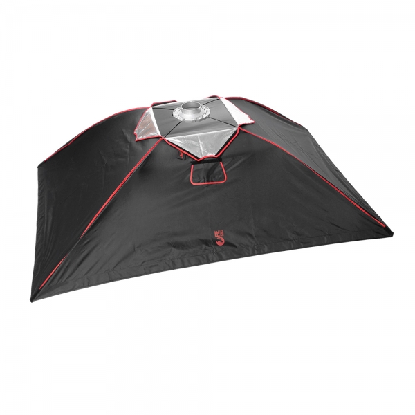 Установленный на приборе софтбокс можно поворачивать на 360 градусов, выбранное положение фиксируется винтом на адаптере. Внешний и внутренний рассеивающие экраны изготовлены из тонких жаропрочных синтетических материалов, крепятся на В комплекте с софтбоксом поставляются соты. С помощью липучки (по всему периметру) соты крепятся к «козырьку» софтбокса. Соты применяется для формирования ограниченного и направленного светового потока с плавным светотеневым переходом от центра к краю светового пятна. Закрытая конструкция позволяет избежать нежелательных бликов и потерь светового потока. Отражатель, с серебристой тканью внутри, обеспечивает равномерную засветку рассеивателя, который в свою очередь, благодаря большой поверхности, смягчает формируемые тени. Дополнительный внутренний диффузор улучшает равномерность светового потока. Наконечники на упругих металлических спицах не повреждают тканевые спицедержатели софтбокса и облегчают сборку конструкции. В комплекте чехол.