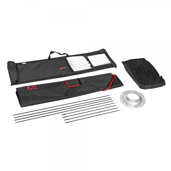 Несущий каркас включает в себя литой алюминиевый адаптер, стальные спицы с наконечниками и сменное байонетное кольцо на Bowens. Для установки