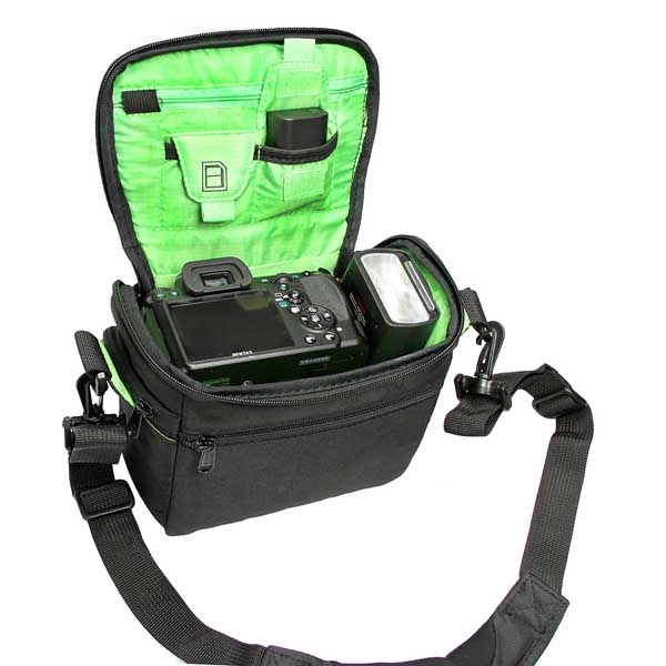 • Вместимость: зеркальная камера со стандартным объективом kit, дополнительный объектив или вспышка, зарядное устройство, аксессуары