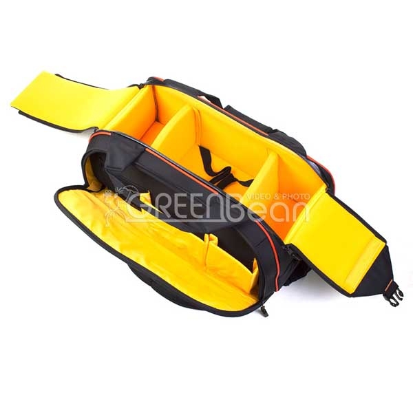 Вместительная сумка предназначена для транспортировки и хранения камкордера среднего размера и дополнительного оборудования. Изготовлена из устойчивого к климатическим воздействиям нейлона с защитным вспененным наполнителем, внутренние стенки из вельвета яркого оранжевого цвета, на фоне которого не затеряются даже самые мелкие предметы. По периметру сумки располагаются ребра жесткости.