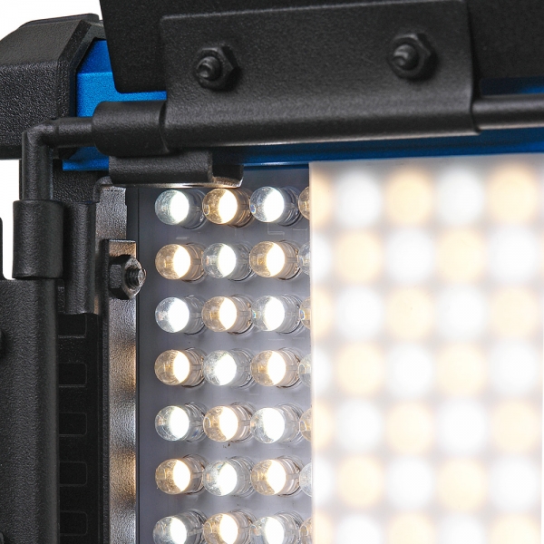 В конструкции используются светодиоды последнего поколения с увеличенной светоотдачей. Яркость плавно регулируется от 10 до 100% с шагом 1%, без мерцания или цветового сдвига, текущее значение яркости отображается на цифровом дисплее. Коэффициент CRI больше 95, это обеспечивает отличную цветопередачу при освещении объекта прибором Ultrapanel 576 LED BD Bi-color. Видимый цвет объекта максимально соответствует его естественному цвету.