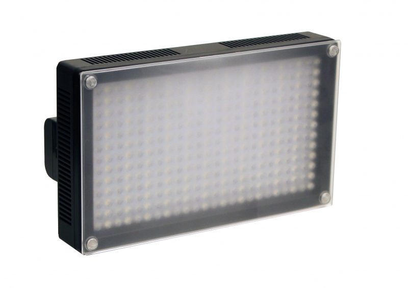 Светодиодный накамерный светильник. В качестве источников света используются 312 светодиодов. Светодиоды подобраны таким образом, чтобы обеспечивать стабильную цветовую температуру. Корпус выполнен из прочного пластика. Встроенный диммер позволяет плавно менять световой поток в пределах от 10 до 100%. Светильник оснащен площадкой для крепления аккумуляторов типа UPL-15/47. Время автономной работы 1,5 часа. Светильник оснащен разъемом для питания от камеры. Шаровая головка позволяет закрепить устройство в любом положении.