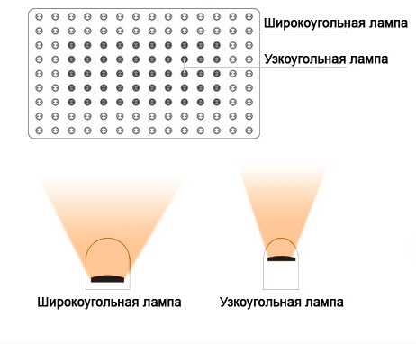 Матричная технология освещения. Светодиодные лампы расположены специальным образом для достижения более широких и сильных световых эффектов. Широкоугольные и узкоугольные лампы используются совместно, для усиления их возможностей.