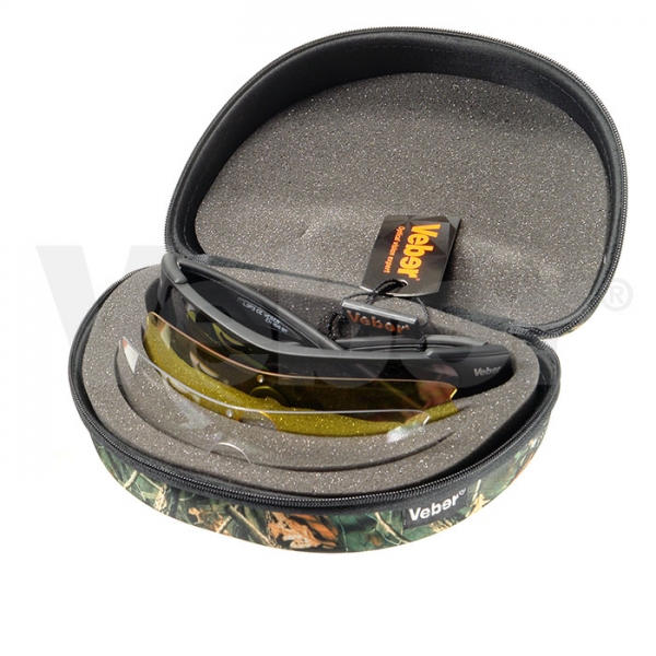 Veber Tactic Force L3P3 - баллистические стрелковые противоосколочные очки с быстросменными ударопрочными поликарбонатными линзами. Очки предназначены для защиты органов зрения от ультрафиолета, ветра, пыли, а также попадания крупных частиц во время активного отдыха и занятия экстремальными видами спорта, при стрельбе в тире, на охоте или проведении тактических учебных операций. Подходят для повседневного использования. Цвет оправы – черный. Очки комплектуются тремя сменными линзами (бесцветные, темно-серые и желтые), жестким футляром на молнии, чехлом и фирменным регулируемым шейным ремешком.