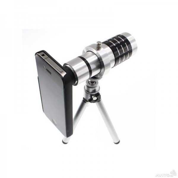 Телеобъектив для iPhone 5 и 5S - позволяет получить фотографии с 12-кратным увеличением. Угол обзора: 12 градусов Диаметр объектива - 21 мм Размер: 33х94 мм Минимальная дистанция фокусировки: 3 м