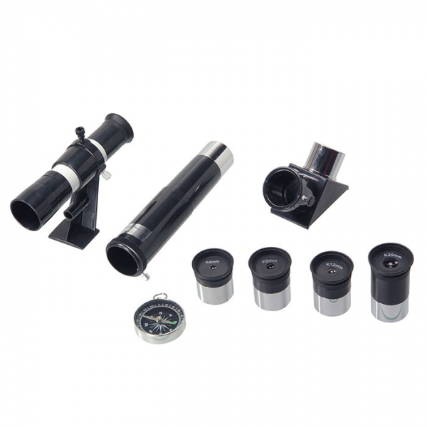 Удобная Что можно увидеть в этот телескоп: кратеры Луны диаметром ок. 10 км, Венеру, Марс, проникающая способность этого телескопа — вплоть до 12,0 зв.вел. Труба телескопа снабжена съемной солнечной блендой, которая не только защищает при дневных наблюдениях от паразитных засветок, но и благодаря своей глубине (90 мм), предохраняет от повреждений объектив. На выходе телескоп дает прямое (не перевернутое изображение) а высокое качество картинки, обеспечивается целым рядом технических «ньюансов», таких как: ахроматический объектив, хорошее чернение трубы изнутри — для устранения паразитных переотражений, окуляры Кёльнера (не самой простой конструкции) и.т.д. Искатель с 6х увеличением для быстрого наведения на цель, расположен под углом 45° к окуляру и не мешает при наблюдениях.