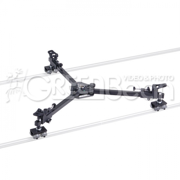GreenBean Tracker 03 dolly - универсальная операторская тележка с рельсовым ходом. Подходит для видеоштативов и легких операторских кранов. На тележку можно установить штативы, ножки которых оборудованы шипами. Вес тележки с колесами - 3,6 кг, выдерживает нагрузку до 30 кг. Операторская тележка используется со стандартными рельсовыми направляющими с шириной колеи 70 см (например, рельсы серии GreenBean RailTracker). Мягкие полимерные колеса обеспечивают плавность и равномерность хода при съемке, на каждой опоре по 4 колеса.