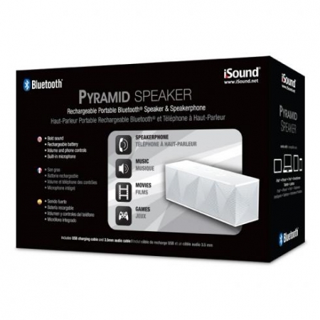 • Акустическая система iSound Pyramid Speaker идеально подходит для использования с iPhone, iPod, iPad, Samsung и HTC всех поколений. Она поддерживает потоковое воспроизведение по технологии Bluetooth, поэтому к ней можно подключить любые устройства, поддерживающие этот тип связи;