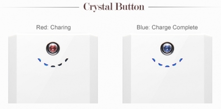 • Кнопка включения выполнена из настоящего кристалла Сваровски. Она же служит и индикатором заряда. Пока ваш гаджет заряжается кристалл Сваровски окрашен в красный цвет, а когда зарядка окончена – в синий;