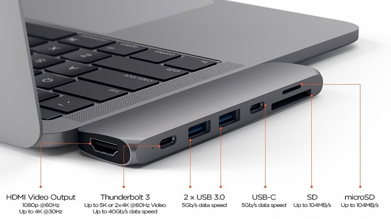 • USB-хаб Satechi Aluminum Type-C Pro Hub Adapter для MacBook Pro 13”/15” 2016
