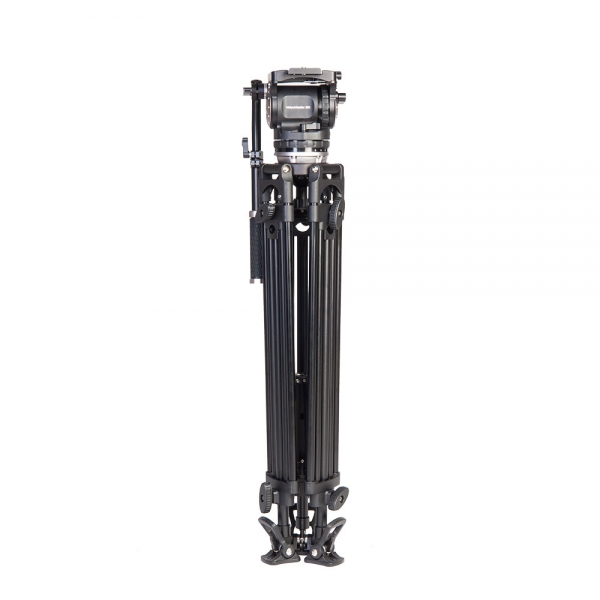 Алюминиевая тренога с 2-х коленным выдвижением, раскладной средней растяжкой и 100 мм шаровой опорой обеспечивает высокую стабильность и предлагает расширенный диапазон высоты установки камеры – от 830 мм до 1780 мм. Все узлы ног и растяжки выполнены из металла, это обеспечивает надежность и долговечность эксплуатации.